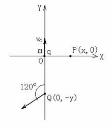 射入匀强磁场,带电粒子从P(x,0)点射出磁场又从Q(0,-y)点射出匀强电场,射出电场时粒子速度跟y轴夹角120°.(不计粒子重力)求: