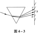 8.如图4-3所示,一细光束通过玻璃三棱镜折射后分成a、b、c三束单色光,则在这三种单色光中 ( )