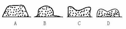 置于水平面的支架上吊着一只装满细砂的漏斗,让漏斗左、右摆动,于是桌面上漏下许多砂子,经过一段时间形成一砂堆,砂堆的纵剖面最接近下图Ⅰ-2中的哪一种形状