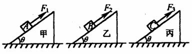 5.如图所示,A、B、C为三个质量相等、材料相同的小物块,在沿斜面向上的拉力作用下,沿相同的粗糙斜面上滑,其中A是匀速上滑,B是加速上滑,C是减速上滑,而斜面体对地均处于静止。斜面体甲、乙、丙所受地面的摩擦力分
