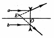 6.如图所示,颜色不同的两束单色光a,b平行于凹透镜的主轴入射,经凹透镜折射 后,若折射光线的反向延长线相交于E点,则以下说法中正确的是 ( )