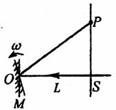 17.(13分)如图所示,平面镜M与坚直巨型光屏平行放置,其与光屏之间的距离为L,由小孔S处垂直屏向平面镜中点O射入一束氦氖激光,现平面镜M以其中点O为轴逆时针匀速旋转,角速度为W,求: