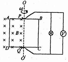 18.(13分)如图所示,将单匝正方形线框ABCD的一半放人匀强磁场中,磁感应 强度B=1T,让它以边界OO′为轴,以角速度w=lOOrad/s匀速转动,在 AB、CD的中点用电刷P、Q将电流输送给小灯泡,线框边长L=0.2m,总电阻为r=4Ω,灯泡电阻为及R=2Ω,不计P、Q接触电阻及导线电阻。求: