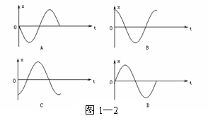 一弹簧振子在A、B间做简谐振动,O为平衡位置,如图1-1所示,以某一时刻作计时起点(t为零)经1/4周期振子具有正方向最大的速度,那么在图1-2所示几个振动图线中,哪一个能正确反映振动情况(以向右为正方向):
