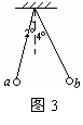 4.如图3所示,长度相等的两根悬线分别挂着刚性小球a和b,它们的质量分别为m1和m2。a的悬线与竖直方向的夹角为2°,b的悬线与竖直方向的夹角为4°,把两个小球由静止同时释放。那么: