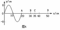 一简谐横波的波源在坐标原点O处,经过一定时间振动从O点传播到A点,波的周期为0.1s此时波的图像如图4,若从此时刻起,下列说法正确的是: