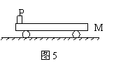 物体P与板车M间的滑动摩擦力为F,板车的平板长为L,如图5所示。当M静止时,P从左向右滑过M,克服摩擦力做功W1,产生热量Q1,当M向右运动时,P仍从左向右滑过M,克服摩擦力做功W2,产生热量Q2,则: