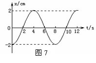 (4分)如图7所示为简谐振动图线,由图可知质点振动频率为 hz,质点振动84s内通过的路程是