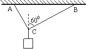 (12分)如图,用绳AC和 BC吊起一重物,绳与竖直方向夹角分别为30°和60°,AC绳能承受的最大的拉力为150N,而BC绳能承受的最大的拉力为100N,求物体最大重力不能超过多少?