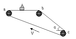 (14分)如图所示的传送皮带,其水平部分 ab=2米,bc=4米,bc与水平面的夹角α=37°,一小物体A与传送皮带的滑动摩擦因数μ=0.25,皮带沿图示方向运动,速率为2米/秒。若把物体A轻轻放到a点处,它将被皮带送到c点,且物体A一直没有脱离皮带。求物体A从a点被传送到c点所用的时间。