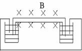 8.如图11所示,一段铜导线弯成∏型,其质量为m,上面一段长为L,处在匀强磁场B中。导线下面两端分别插在两只水银杯中,两杯与一带开关的内阻很小的电源相连。当S接通时,导线便从水银杯中跃起,上升高度为h,求通过导体的电量。
