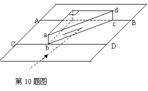 在水平面上有两条光滑的导轨AB、CD,有一个表面都光滑的钢制劈形滑块放在导轨内,可沿导轨左右移动。一颗子弹以跟平面abcd成θ角打到劈abcd面上被弹开,如图所示,滑块被子弹打击后,它的运动情况是: