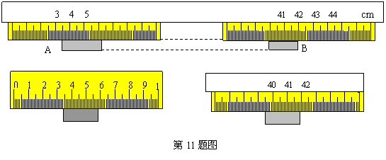 (4分)用米尺测量一杆的长度,杆的两端A、B在米尺上的位置如图所示。由此可知该杆的长度为 cm 。