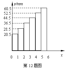 12、(5分)做匀加速直线运动的小车,牵引一条纸带通过打点计时器,交流电源的频率是50Hz,由纸带上打出的某一点开始,每5个点剪下一段纸带,按如图所示,将纸带贴在坐标系中,每一条纸带下端与x轴相重合,左边与y轴平行,则