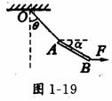 5、如图1-19所示,均匀杆AB重为G,A端用细绳吊在O点,在B端加一个水平力F,当杆静止时,杆与水平方向夹角为α,细绳与竖直方向成θ角,则 ( )