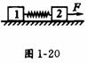 6.如图1-20所示,在一粗糙水平面上放有两个质量分别为m1、m2的铁块1、2,中间用一原长为L,劲度系数为是的轻弹簧连接起来,铁块与水平面的动摩擦因数为μ现有一水平力拉铁块2,当两个铁块一起做匀速运动时,两铁块间的距离为 ( )