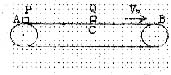 (20分)如图所示,水平传送带以v0匀速传动,其两端A、B相距2L,现将小物块P轻放于传送带A端,待P被带到AB中点C时,恰遇刚刚轻放下的同质量小物块Q,两者迅速合为一体。已知P、Q与传送带间的动摩擦因数均为