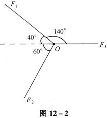 三个力作用下处于平衡状态,各力的方向所在直线如图,图上表示各力矢量的起点均为O点,终点未画,则各力的大小关系可能为( )