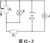 7.如图12-3所示,A、B为两个相同的电灯泡,当滑动变阻器的滑片向下滑动时,两灯的亮度变化情况是 ( )