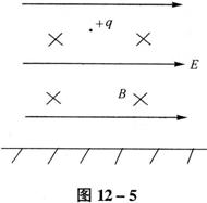 9.如图12-5所示,匀强电场水平向右,匀强磁场垂直向里,带正电的小球在场中静止释放,最后落到地面上,在这一过程中,下述说法正确的是 ( )