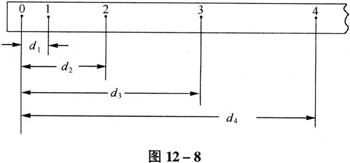 12.(6分)某学生做了一次较为精确的匀加速运动的实验。他在实验中所用打点计时器每隔0.02s打一个点,采用每打5点的时间作为一个计时单位,运动中从某一时刻起的打点纸带如图12-8所示,测得第二个,第三个计数点与起点相距