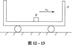 19.(13分)在光滑水平面上有一辆长L=1.0m的小车A,车上有一小木块B,如图12-13所示,A、B质量相同,A、B间动摩擦因数μ=0.05,开始时A静止,B位于A的正中央并以