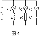 如图4,三只白炽灯泡L1、L2、L3分别和电感、电阻、电容串联后并联接在同一个交变电源上。当交变电源的电压为U,频率为50Hz时,三只灯泡的亮度相同。那么当交变电源的电压不变,而频率增大后,三只灯泡的亮度变化将是