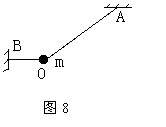 (3分)用轻绳AO和BO悬挂一质量为m的小球,最初AO绳倾斜,BO绳呈水平时小球静止不动,如图8所示,若将BO绳烧断,结果发现小球向下摆动通过最低点时,小球对AO绳的拉力和当初小球静止时对AO绳拉力一样大,则这个拉力的大小为