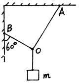 7.如图所示,细绳OA、OB共同吊起质量为m的物体.OA与OB互相垂直.OB与坚直墙成60°角,OA、OB对O点的拉力分别为