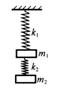 直地悬挂在天花板下。两弹簧之间有一质量为m1的物体,最下端挂着质量为m2的