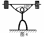 举重运动员在抓举比赛时,为了减小杠铃上升的高度和便于发力,抓握杠铃的两手间要有较大距离,使两臂上举后两臂间成钝角,手臂伸直后所受作用力沿手臂方向,一质量为75kg的运动员,在举起125kg的杠铃时,两臂成120°角,如图4所示,则此时运动员的每只手臂对杠铃的作用力F及运动员对地面的压力T的大小分别为(g=10m/s2)( )