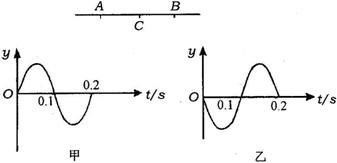 时刻A、B开始振动,且都只振动一个周期,振幅相等,振动图象A为甲,B为乙。若A向右传播的波与B向左传播的波在