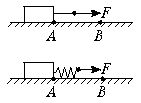 10.质量为m的物体静止于光滑水平桌面上的A点如图所示,现用水平恒力F分别通过细绳和轻质弹簧把物体由A点从静止拉到B点.两种情况下水平恒力所做的功分别为W1和W2,物体到B点时具有的动能分别为Ek1和Ek2,则它们之间的关系为( )
