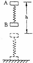 16.(15分)如图所示,质量分别为m和M的A、B两重物用劲度系数为k的轻质弹簧竖直地连接起来,使弹簧为原长时,两物从静止开始自由下落,下落过程中弹簧始终保持竖直状态。当重物A下降距离h时,重物B刚好与地面相碰,假定碰后的瞬间重物B不离开地面(B与地面作完全非弹性碰撞)但不粘连。为使重物A反弹时能将重物B提离地面,试问下落高度h至少应为多少?(提示:弹簧形变量为x时的弹性势能为EP=