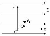 (13分)一带负电电量为q的油滴,从坐标原点O以速度v0射入匀强电场,v0方向与电场方向成