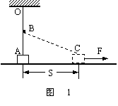 1、如图1所示,竖直轻橡皮筋上端固定于O,下端A与放在水平面上的质量为m = 0.4 kg的小物块P相连。P对水平地面的压力恰为P重力的3/4,紧靠OA右侧有一光滑的钉子B,B到O点的距离恰为橡皮筋原长。对P施加一恒定拉力F = 20N,使P从静止开始向右滑行S = 0.40m后,到达C点时的速度为v = 4m/s。已知P与水平地面间的动摩擦因数为μ= 0.2,橡皮筋的形变始终在弹性限度内,且形变过程中倔强系数k保持不变,g = 10 m/s2,求P从A到C的过程中橡皮筋增加的弹性势能。