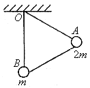 *4. 如图所示,长度相同的三根轻杆构成一个正三角形支架,在A处固定质量为2m的小球,B处固定质量为m的小球,支架悬挂在O点,可绕过O点并与支架所在平面相垂直的固定轴转动,开始时OB与地面相垂直,放手后开始运动,在不计任何阻力的情况下,下列说法错误的是( )