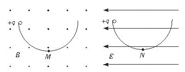 8.如图所示,两个半径相同的半圆形轨道分别竖直放在沿水平方向的匀强电场和匀强磁场中,轨道是光滑的,两个相同的带正电小球同时从两轨道左端最高点由静止释放.M、N为轨道的最低点,下列判断正确的是