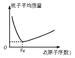 (12分)(1)精确的研究表明,不同的原子核,其核子的平均质量(原子核的质量除以核子数)与原子序数有如图所示的关系.试根据此图说出至少两条相关信息.(2)太阳的能量来自下面的反应:四个质子(氢核)聚变成一个α粒子,同时发射两个正电子和两个没有静止质量的中微子,已知氢气燃烧与氧气化合生成水,每形成一个水分子释放的能量为6.2 eV,若想产生相当于太阳上1 kg的氢核聚变成α粒子所释放的能量,须燃烧多少千克氢气?