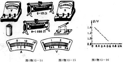 (3)根据实验记录,画出U-1图像如图3-16所示,可得待测电池的内电阻r为_______________Ω
