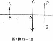 21、(12分)如图3-18所示,物体AB垂直于凸透镜主光轴放置,物体AB的长为透镜直径的1/4物体的位置在透镜的2倍焦距处。 在透镜的另一侧的焦点处,垂直于透镜主光轴放有一挡板PQ,要使物体AB在透镜的另一侧形成的像完全消失,挡板PQ的长度至少应为AB长度的多少倍?