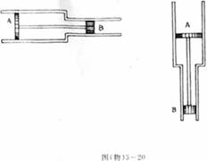 23、(13分)如3-20图,气缸由两个横截面不同的圆筒连接而成。活塞A、B被轻质刚性细杆连接在一起,可无摩擦移动。A、B的质量分别为mA=12kg,mB=8.0kg横截面积分别为SA=4.0×10-2m2,SB=2.0×10-2m2一定质量的理想气体被封闭在两活塞之间。活塞外侧大气压强P0=1.0×105Pa。