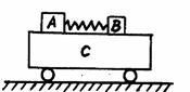 在光滑的水平桌面上放着一辆小车C,车上有A、B两个物体,mA>mB ,且两个物体与车面之间的动摩擦因数相同;A、B之间用一轻弹簧连接,从A、B两侧压缩弹簧然后同时由静止释放,A、B两物体开始在车面上运动,则 ( )