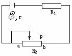,内阻为r,外电路中,电阻R1=r,滑动变阻器的全部电阻为R2=2r,滑动片从a端向b端滑动过程中,哪种说法正确? [ ]