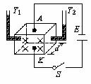 的导电液体,容器两侧面中心连有两只竖直放置的玻璃管T1和T2,容器的上下两个面均是用不和电解液发生化学反应的铂金制成的电极板A、K,并和开关S、电动势为E的无内阻电源相接组成电路,容器的两侧面均和磁感线平行。当合上开关S后,发现两玻璃管中电解液液面的高度差为h,求液体的电阻R。