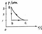一定质量理想气体的p-V图像如图所示。若其状态由a→b→c→a (ab为等容过程,bc是等压过程,ca为等温过程),则气体在a、b、c三个状态时:( )