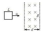 14.边长为L的正方形线框电阻为R,将以恒定速度v 匀速穿过有界匀强磁场,磁场的磁感应强度为B,v方向垂直于B,也垂直于磁场边界,磁场范围宽度为d,如图所示,则