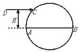 (10分)如图所示,透明介质球的半径为R,光线DC平行于直径AB射到介质球的C点,DC与AB的距离H=0.8R.