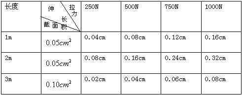 ,设计要求它受到拉力后的伸长不超过原长的1/1000,问最大拉力多大?由于这一拉力很大,杆又较长,直接测试有困难,选用同种材料制成样品进行测试,通过测试取得数据如下: