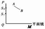 (13分)如图所示,M为水平放置的一块平面镜,AB为平面镜上方一个短尺,PQ为一个跟平面镜面垂直的竖线,由于平面镜上某区间贴着黑纸,使人眼不能在竖直的S1至S2之间通过平面镜看到短尺,请用作图法找出平面镜上用黑纸遮住的部分,并写出作图步骤。